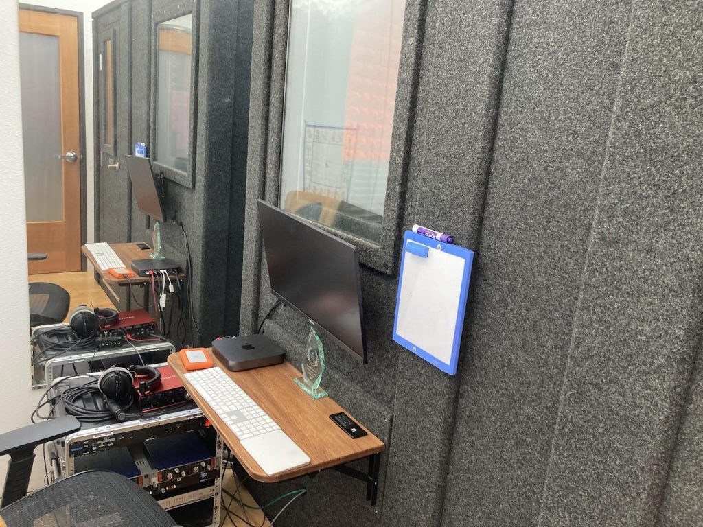 Neumann U87, (AKG 414 XLII or additional Neumann U87 available upon request for an added fee), Neve Portico preamp, Scarlett 18i8 interface, Mac Mini, Ethernet Hardwired, Pro Tools, Source Connect Standard (3.9 and 4.0), web cam for directed sessions, Zoom, Teams, and more.