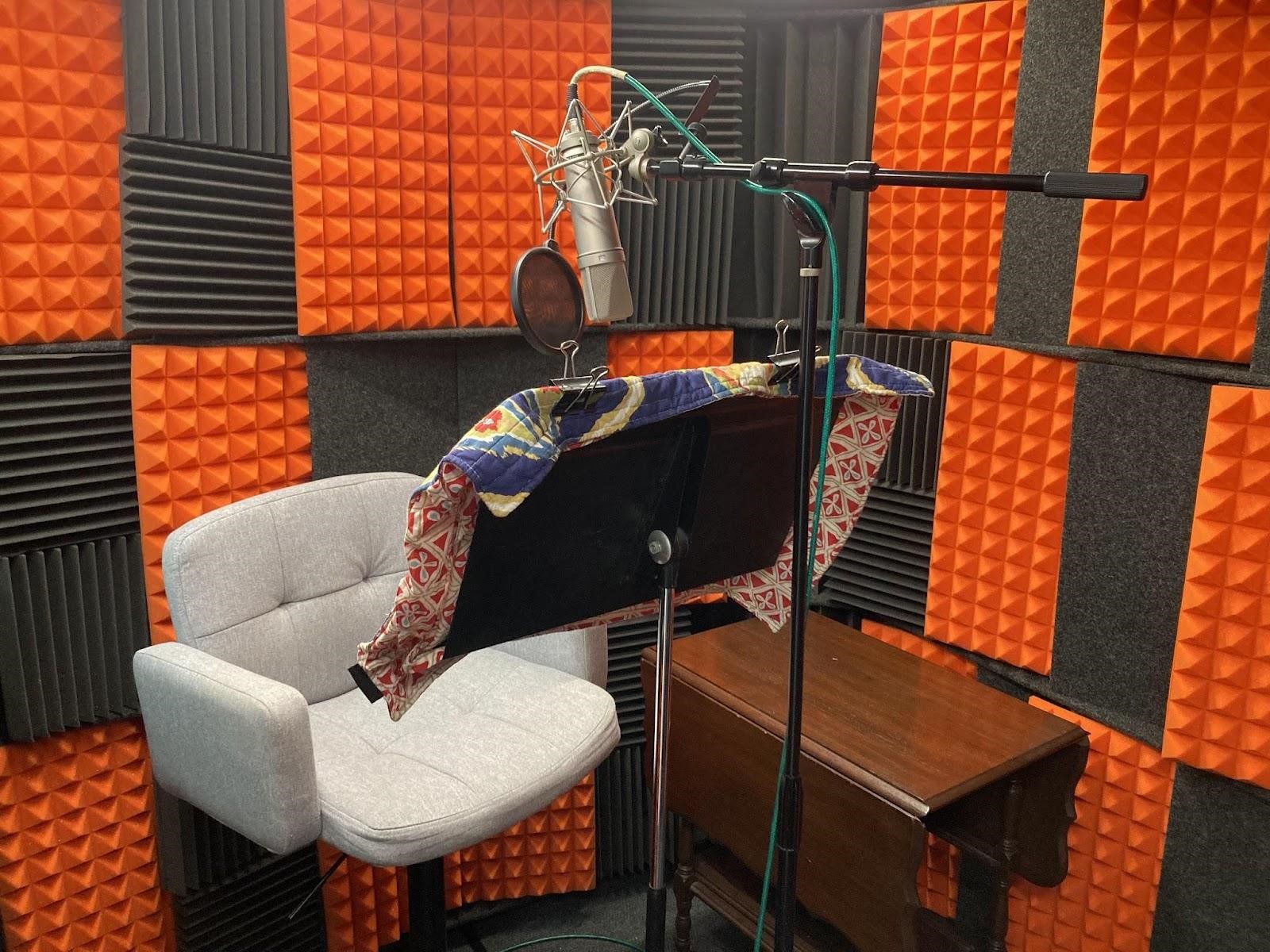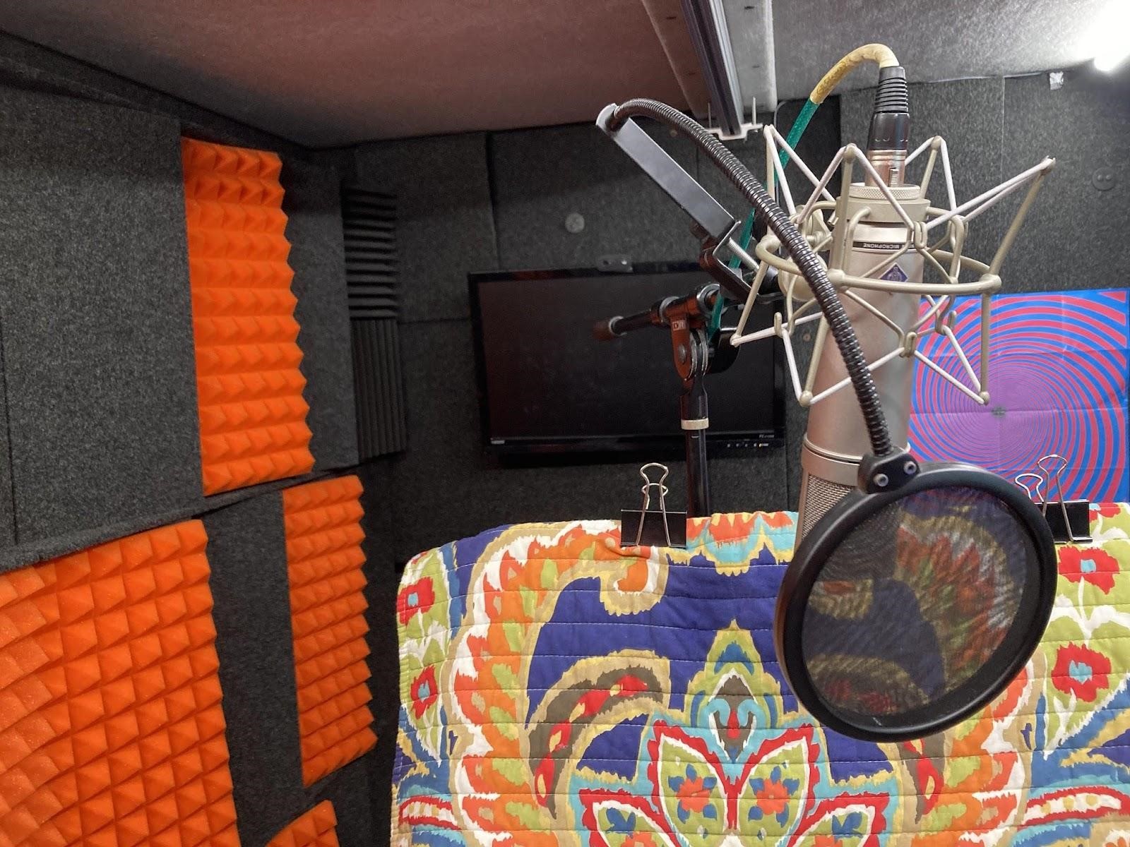 My cozy yet spacious 7’x8’ vocal booth is nestled in a private room at the amazing recording studio Singing Serpent in San Diego. Great for single person VO, but can easily fit 2-3 for podcast recording or other needs. Equipped with top of the line gear, my room is perfect for remote recording via Source Connect, ADR, Prelay, and Dubbing, Audiobooks, Commercials, Non-Broadcast, and more. There’s a monitor mounted inside the vocal booth with a webcam for when video is a must (or just nice to have). As an audio engineer specializing in VO production as well as a voice talent myself, I know what you need to record comfortably. That’s why I have available a quiet chair, a cushioned bar stool, and a standing mat to accommodate your preferred recording setup. Oh, and the perks? An espresso machine, kombucha on tap, warm and cold filtered water, and a fridge to stash your nums. There’s a small parking lot, and there’s ample free street parking close by. Plus it’s in the heart of Kensington, one of the most adorable neighborhoods in SD! With cute shops and restaurants, salons and spas, and my favorite, a public library and park.